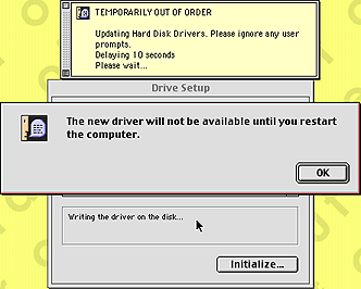 Okey Dokey Pro This control panel watches for dialog boxes and selects the default button for you. It allows you to set it so it only does this in certain applications, so we set it to hit "OK" in Drive Setup after the driver has been updated, and in Diskwarrior after the replacement directory has been constructed. Click here to download Okey Dokey Pro. (link dead)