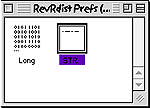 Open the RevRdist Prefs file in ResEdit, and find the STR resource (selected in picture to left). Double-click on this resource icon.